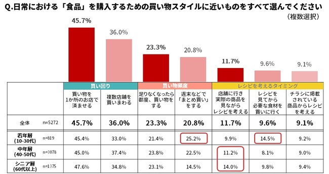 ■若年層はレシピを見て買い物に行く 中年層・シニア層は店舗で商品を見てレシピを考える