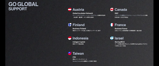 そして、今年はスポンサー企業に加えて、協力パートナーとして各国の大使館などに参画いただき、海外イベントへの参加をはじめ、世界各国のエコシステムへの展開を支援いただく機会提供がございます。GRIC PITCHは引き続き、登壇企業を募集しておりますので、この機会にぜひ挑戦ください。