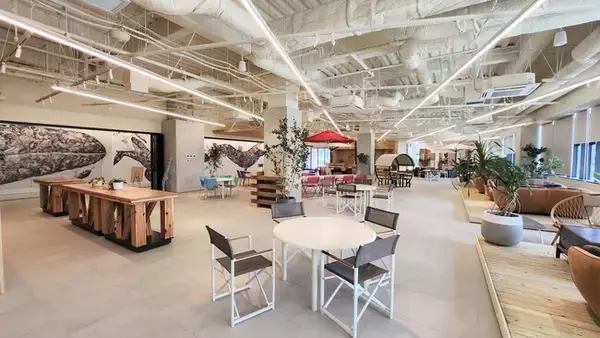 シェアリング・ソリューションを進化させる研究開発施設「R&D国際交流センター」に新設した、地域社会との交流を図るオープンなパブリックシェアスペース。国産材を多数活用し、ビジネスパートナーから近隣居住者まで幅広い人々が本物の木に直接触れることができる空間を創造しました。