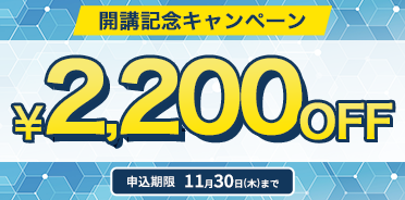 情報セキュリティマネジメント講座の開講を記念して、多くの方にご利用いただけるよう10月12日(木)から「開講記念キャンペーン」を実施いたします。キャンペーン期間中にご購入いただくと、2,200円引きでご受講いただけます。