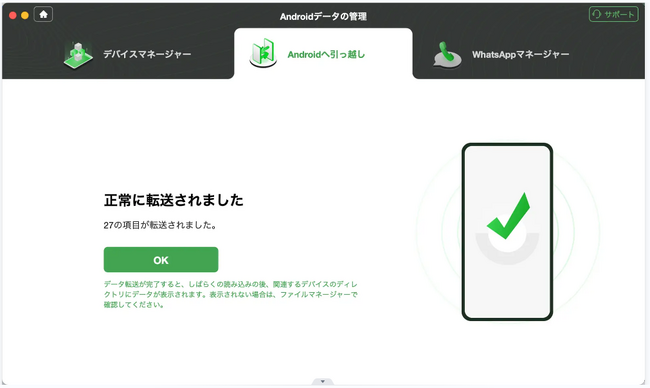 Step4.データ転送が完了すると、「完了しました!」という画面が表示されます。