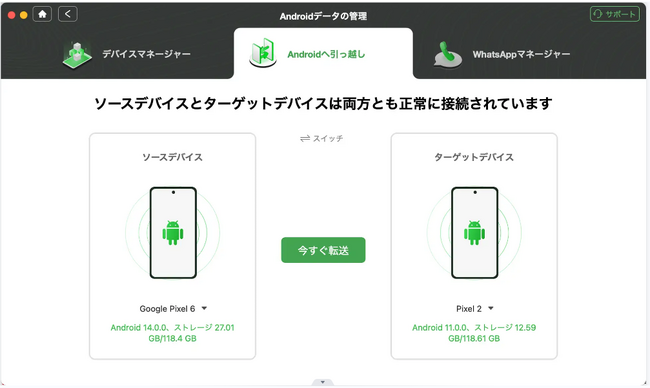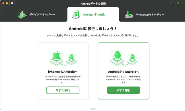 DroidKitはAndroidデバイスに適用する専門的なデータ管理ソフトで、写真、ビデオ、ファイルなどほとんどの種類のデータが移行できます。数クリックだけで大切なデータが新しいスマホで見えます。それだけでなく、DroidKitはiPhoneからAndroidへとAndroidからAndroidへのデータ移行にも対応できますので適用範囲はとても広いです。