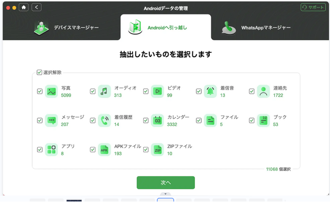 Step4.転送したいデータの種類を選択して、「次へ」をクリックします。