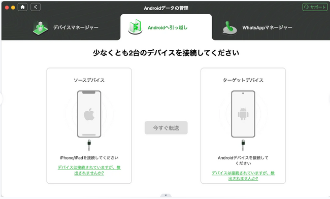 iPhoneからの移行手順は大きな違いがないです。ただ、Step2の時、【iPhoneからAndroidへ】を選択します。そして、「今すぐ移行」をクリックします。