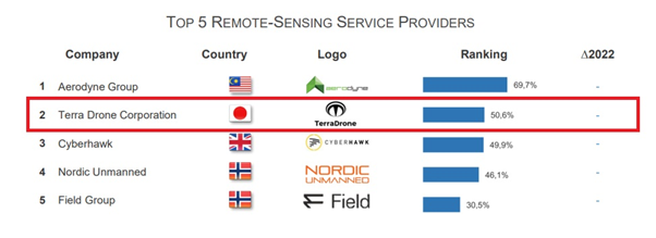 テラドローンは今回、運航管理システムプロバイダーの世界におけるリーディングカンパニーであるUnifly(ユニフライ)の子会社化や、世界初の技術を有するドローン農薬散布事業のリーディングカンパニーAvirtech(アヴィールテック)の事業買収といった海外事業拡大の実績などから、企業規模や前年からの事業成長率、社会関心度で特に高く評価され、リモートセンシング(※1)部門において3年連続で世界2位にランクインしました。ランキングのレポートはこちらからご覧いただけます。