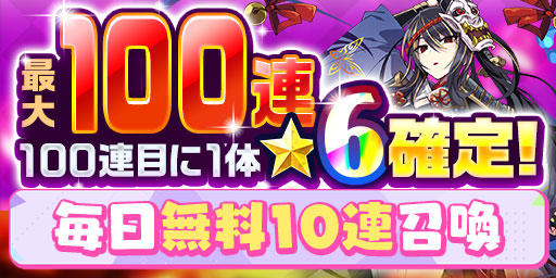 毎回★5以上のモンスターが1体確定で獲得でき、さらに100連目では★6モンスターが必ず1体獲得できます。