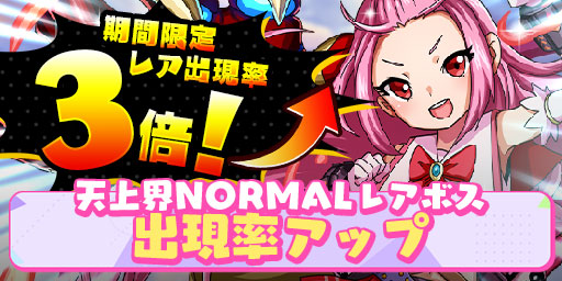 期間中、天上界NORMALステージのレアボス出現率が3倍にアップします。