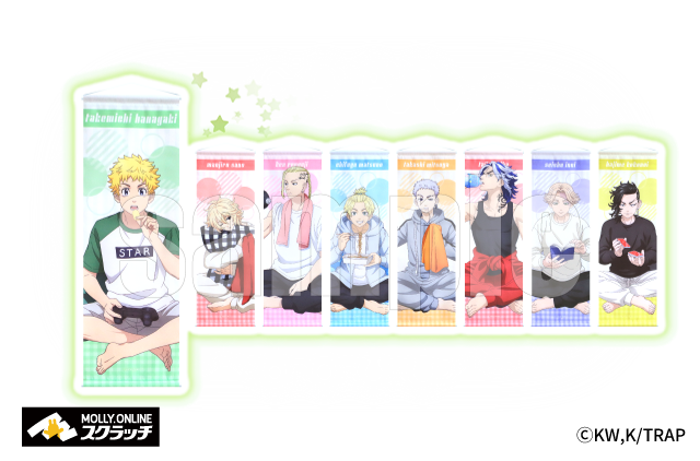 「モーリーオンラインスクラッチTVアニメ 『東京リベンジャーズ』第2弾」は、TVアニメ『東京リベンジャーズ』に登場する花垣武道、佐野万次郎、龍宮寺堅、松野千冬、三ツ谷隆、柴大寿、乾青宗、九井一の「おうち時間」をイメージした描き下ろしイラストを使用した限定グッズが当たるオンラインスクラッチです。