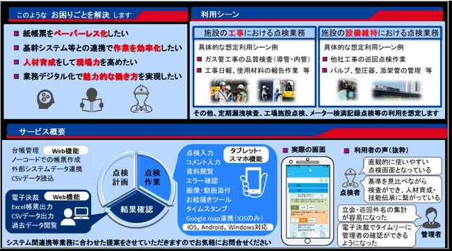 eガスノートは、スマートフォン・タブレットを利用した工事・設備点検用アプリケーションです。