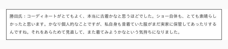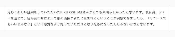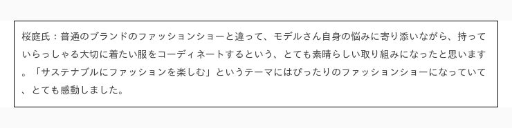 また、参画企業の皆さまにも、ファッションショーを終えた感想を伺いました。