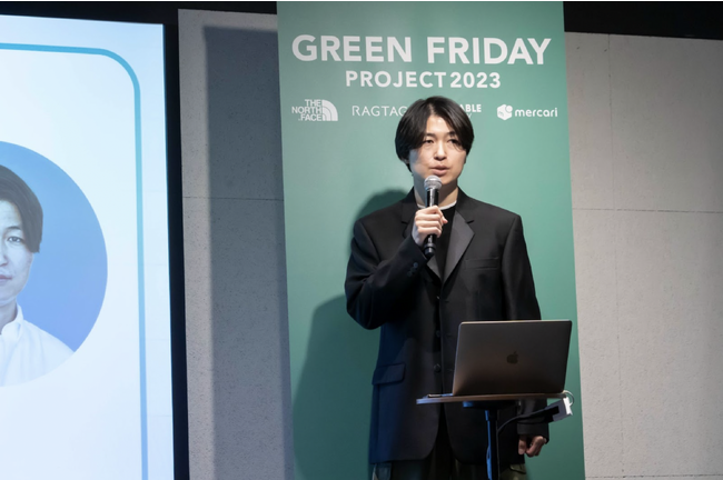 本プロジェクトについて河野は、循環型社会の実現はメルカリ単体でできることではなく、メーカーや小売店などの一次流通と二次流通の連携を強めて、取り組みの輪を広げていく必要があるという点を強調し、「今年のグリーンフライデープロジェクトでは、THE NORTH FACE、RAGTAG、CIRCULABLE SUPPLY、3つのブランドさまにご協力いただきました。一次流通市場を中心に事業を展開する企業と二次流通市場で事業を展開する企業の枠を超え、サステナブルなファッションの楽しみかたを提案することで社会全体の『捨てる』を減らし、循環型社会の実現を推進していきたいと考えています」と共同開催の背景について説明しました。
