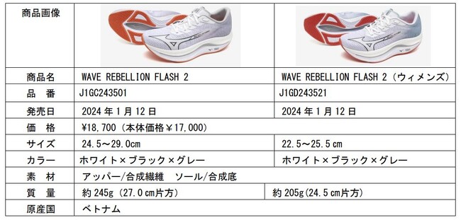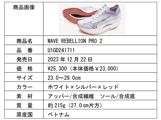 ミズノは、スピードランナー向けランニングシューズ「WAVE REBELLION PRO 2」を12月22日、「WAVE REBELLION FLASH 2」、「WAVE REBELLION SONIC 2」を1月19日にミズノ公式オンライン、ミズノ直営店、全国のミズノ品取扱店で発売します。