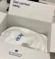 真贋センターで取り扱われる商品は、認証済みであることを示すカード(写真左下)とともに専用の箱(写真右下)と袋に入れて買い手に発送されます。