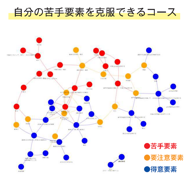 「AIチューター・ゼロ」「Math × Pass」では、各問題を解くために必要な「要素」に分解しています。生徒が間違えた問題や過去の学習履歴を踏まえ、約1万題の中から生徒が解くべき問題を、単元にこだわらず遡って提案します。「要素」ベースに苦手な単元を特定し、トレーニングコースを作ることができます。
