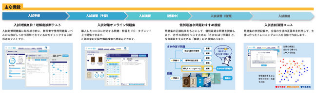 「Math × Pass」は「AIチューター・ゼロ」の大学入試対策プレミアム機能で、個別最適化な入試対策学習を実現するためのオンライン教材です。AIチューター・ゼロの問題おすすめ機能に加えて、「啓林館の入試問題集に取り組む機能」や「理解度診断テスト」、「入試直前演習コース」を備えており、高校数学の入試準備から入試直前までの学習をトータルサポートします。教科書等の発刊を行う啓林館とAIサービスを提供するプラスゼロとの共同開発により、学校現場に寄り添った新しい学習スタイルを提供するサービスになっております。