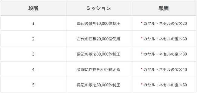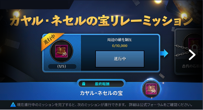 イベント期間中、段階的に進行可能なミッションをクリアすると、各報酬を獲得することができます。