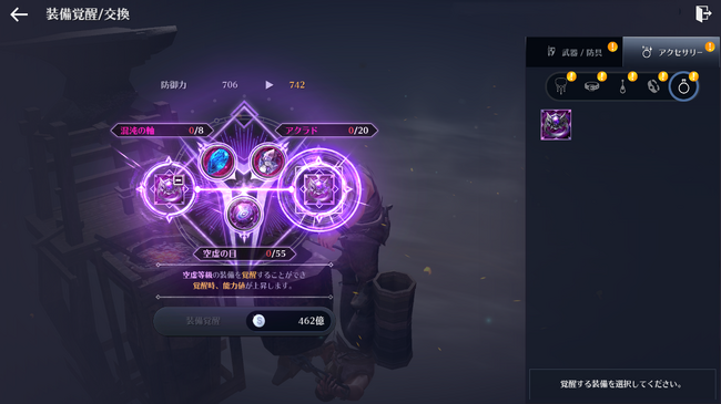 「空虚アクセサリー」は覚醒しても突破段階、装着した水晶、魔力刻印、記憶刻印はそのまま維持されます。「空虚アクセサリー」は領地内の装備工房で、覚醒させることができます。
