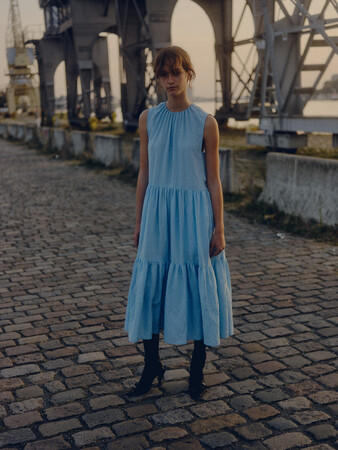 今シーズンはブランドアーカイブの型から、ブルーのカラーリングが魅力のドレス、ディテールに遊びのあるデニムスカートやグラフィックパターンが目を引くアイテムが並びます。インラインでは通常展開のない特別なコレクションとなっております。