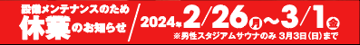 3月2日(土)・3日(日)のみ改装中のため男性スタジアムサウナ室は使用不可。