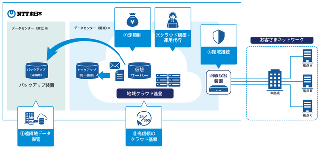 NTT東日本データセンター内にクラウド基盤を配備することで、地域エッジクラウドならではの安心と使いやすさを実現します。