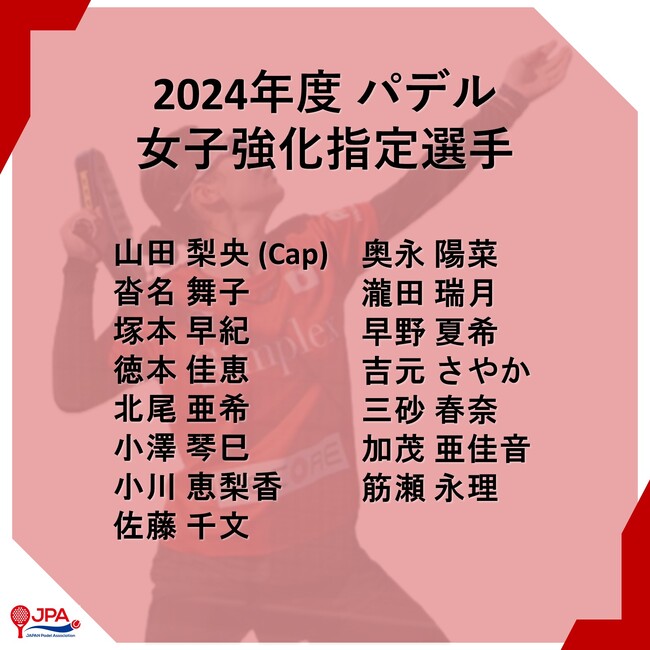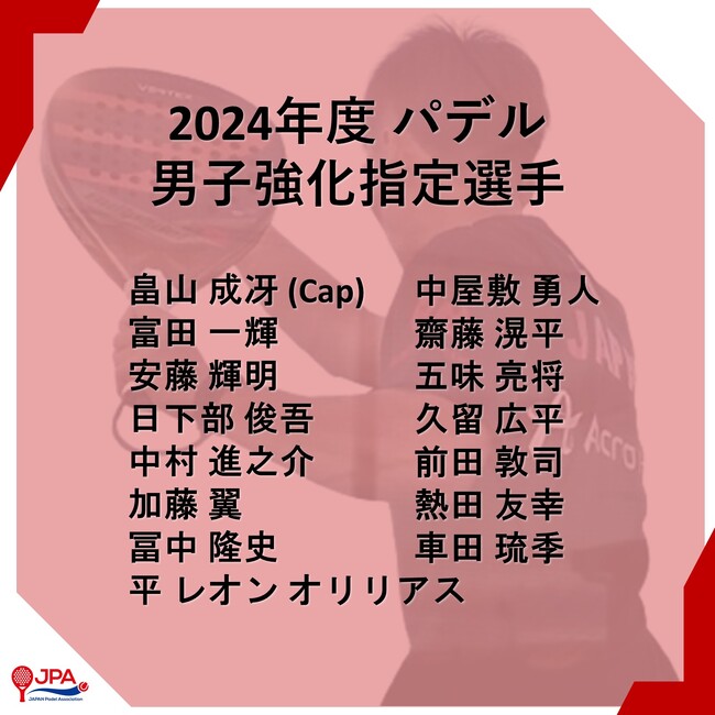 日本パデル協会(以下、JPA)は、「2024年度 パデル 強化指定選手」メンバーを2月3日(土)に開催した「JPA AWARDS 2023」にて発表いたしました。