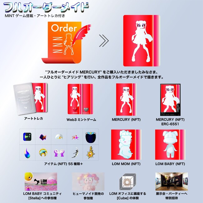 ”フルオーダーメイドMERCURY”をご購入いただきましたみなさま、1人ひとりに”ヒアリング”を行い、全作品をフルオーダーメイドで描きます。(※MINTゲーム搭載・アートトレカ付き)