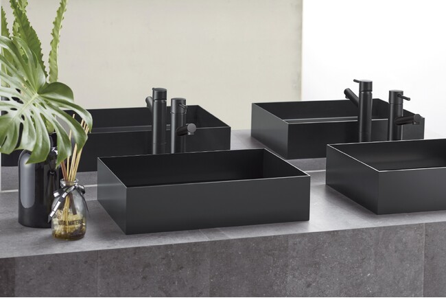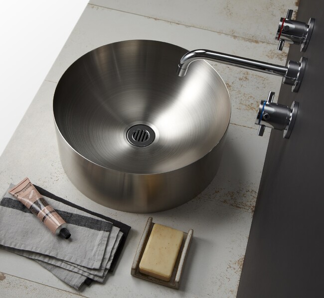 今回展示ブースでは、当社を代表するオールステンレスのキッチン《グラッド45》をはじめ、海外のデザイン賞を受賞した洗面ボウル《スピニング》《アッセ》、洗面台《フィーネ洗面》、滋賀県の伝統工芸である信楽焼を取り入れた《シガラキコンクリ》など、計28商品を展示いたします。