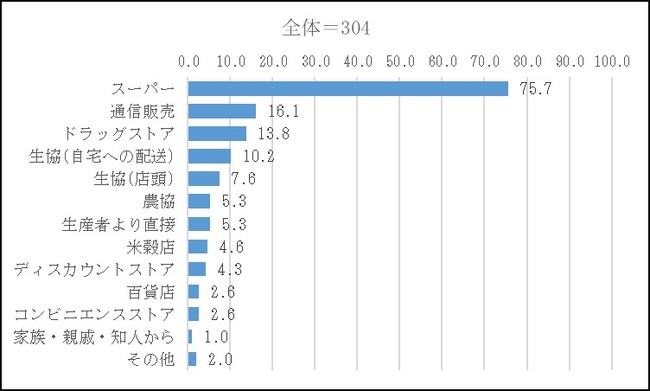 2. 無洗米の購入先はスーパーが主