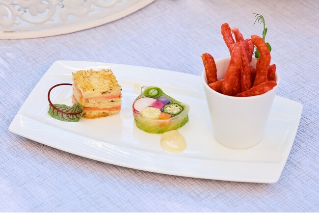 レッドフライドポテト/彩野菜のピクルス モザイク仕立て/ライ麦パンのクロックムッシュ