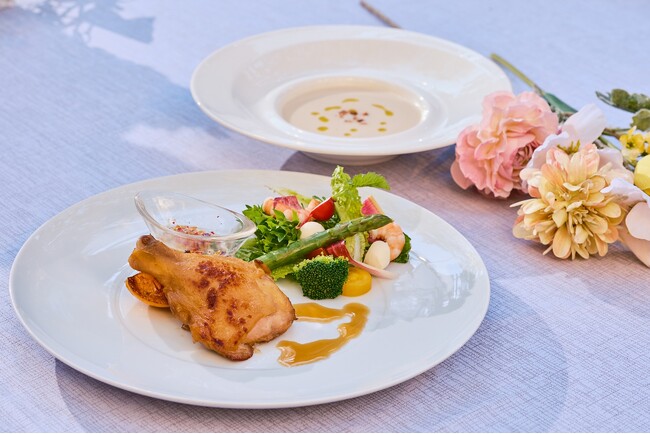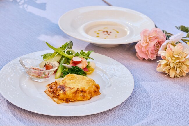 また関西2店舗限定で、テーマを象徴する異なるパフェをオプションでご用意。その他、カラフルなエディブルフラワーがあしらわれたショートケーキや、ハニーマスタードチキンやラザニアのランチセット付プランもご用意していますので、ご友人同士でも、お子様連れのファミリーでもお楽しみいただけます。