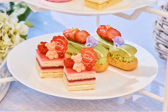 ドイツの老舗テディベア「ハーマンテディ」コラボレーションし、旬のいちごとハチミツを使用したパステルカラーの限定アフタヌーンティーを販売いたします。