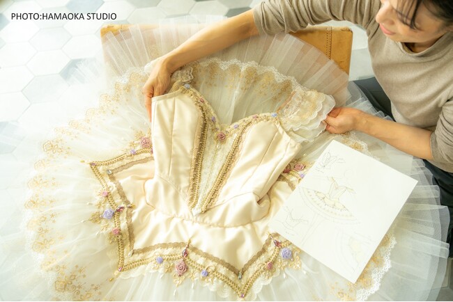 一方で、大学卒業後26年間は某大手通販会社に勤務し、商品開発から販売企画、ECサイトのコンテンツ制作など様々な業務に携わり、バレエ衣装製作者としては珍しいキャリアを経てきました。その経験も活かし、ただ縫うだけに留まらず、ゼロから企画し新しいクリエイションを生み出す力を、今秋のパリコレの舞台で大いに活かそうとしています。