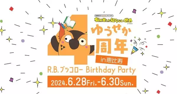 株式会社有隣堂(本社:神奈川県横浜市代表取締役社長:松信健太郎)は、2024年6月30日(金)、公式YouTube チャンネル「有隣堂しか知らない世界(略称:ゆうせか)」の開設4周年を迎えます。これを記念して、2024年6月28日(金)~30日(日)の3日間、「ゆうせか4周年 in 恵比寿 R.B.ブッコローBirthday Party」を有隣堂 アトレ恵比寿店で開催します。