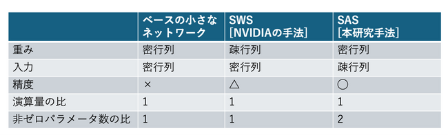このように、本研究の提案するSASは演算量を変えずにたくさんのパラメータをもった幅の広いニューラルネットワークを実現します。