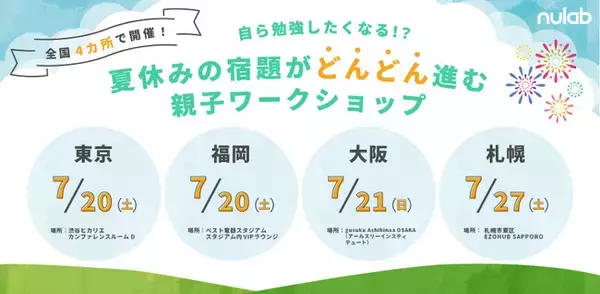 株式会社ヌーラボ(本社:福岡県福岡市、代表取締役:橋本正徳、以下 ヌーラボ)が提供しているプロジェクト・タスク管理ツール「Backlog」は、プロジェクト管理の考え方を応用した親子向けイベント「自ら勉強したくなる?!夏休みの宿題がどんどん進む 親子ワークショップ(以下、本イベント)」を東京・福岡・大阪・札幌の全国4ヵ所にて開催することを決定しました。