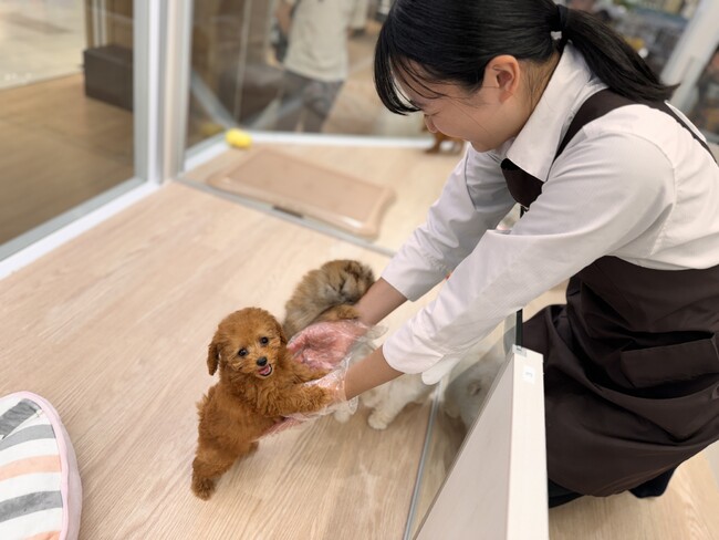また、特許取得済みの展示スペースである「プレイルーム」は、子犬・子猫の性格を形成するうえで非常に重要な社会化期に同じ種別同士で触れ合いながら、快適に過ごすことができる構造となっております。