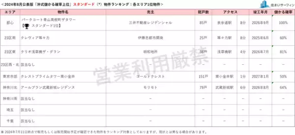 8月公表分は、2024年7月11日時点で販売もしくは販売予定が確認できた物件を対象としています。