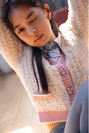 【USAGI ONLINE・ZOZO限定】パイル編みショート丈金釦ニットジャケット