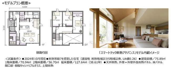 今回、ラインアップした「スマートテック断熱アドバンス」は、断熱等性能等級7を実現する最高水準の断熱仕様※4として提案。2階建、高天井、高窓などを設けた充実した空間による暮らしの豊かさとあわせて、一部の仕様をアップグレードすることで断熱等級7を実現します。