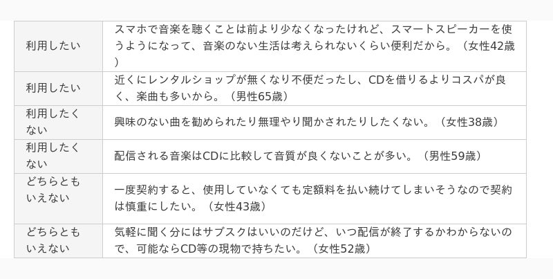 ☆定額制音楽配信サービスを利用したい理由、利用したくない理由(全5,551件)