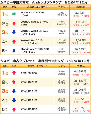 売上順位 / 機種名(キャリア)/ 平均価格※(前月比)