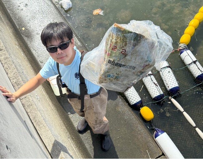 下げ潮が始まり、上流に滞留していたごみが一斉に流れはじめた影響で、多くのごみを回収することができました。