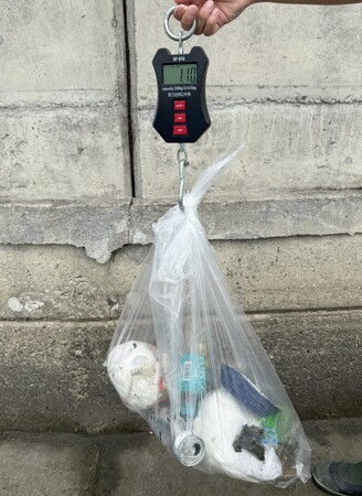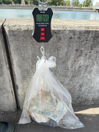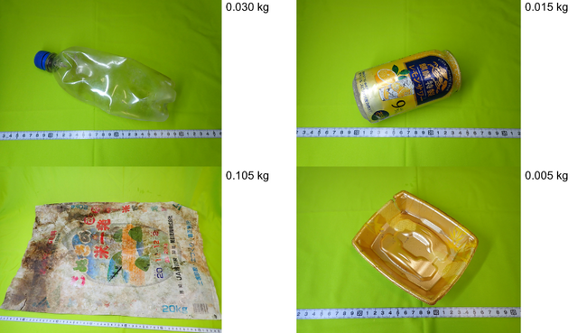 今回の実証実験では、中間回収(12:00・14:00)と実験終了時(16:00)の計3回の回収を行っており、硬質プラスチック、缶、ビニール袋等、合計約1.8kgの河川ごみを回収することができました。