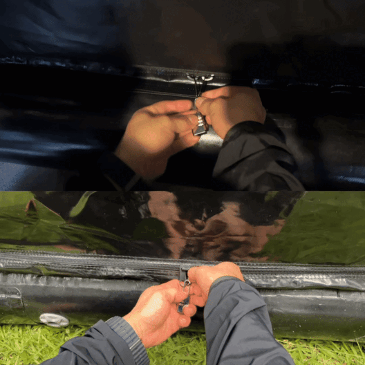 水上アスレチック製品に使用されているPVC素材を採用しています。耐久性が求められる過酷な環境下でも長期間使用可能です。この素材は、日光や雨風といった自然環境に対する強い耐性を持ち、アウトドアの使用頻度が高い方でも安心してお使いいただけます。また、圧着も3重構造技術を採用し、より強靭なパフォーマンスを実現しました。