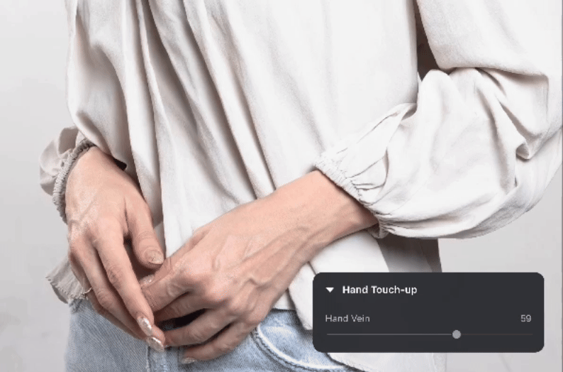 手の甲に浮き出た血管や薄っすら見えている血管をスライドバーで軽減および除去できるようになりました。