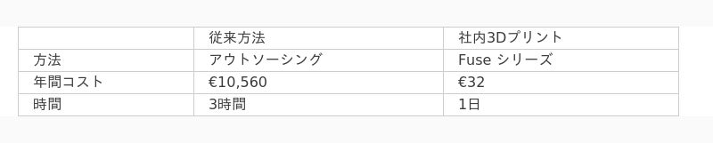 ロボットのグリッパーをFuseシリーズで製造し、従来ユーロ55かかっていた部品をユーロ1で生産可能に。これにより、年間でユーロ10,500以上のコストを削減。
