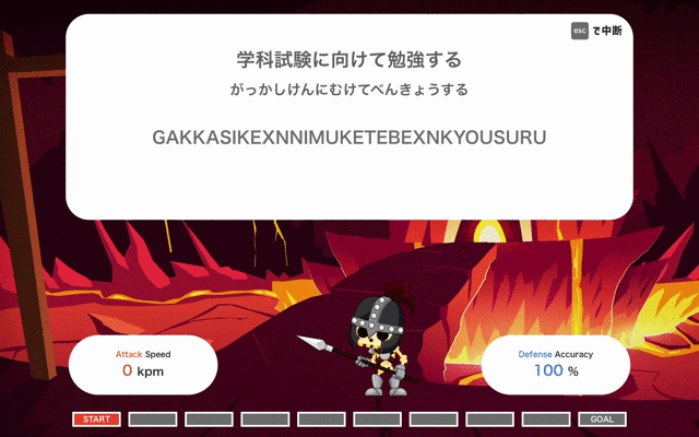 学校や企業の研修利用も想定し、ボス共闘の出現時間を長く設定するなど、緊急性や複雑なゲーム性を抑えた安心設計です。タイピング練習を楽しく継続できるよう、ゲーム要素を取り入れております。