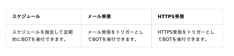 クラウドBOTの実行トリガー一覧