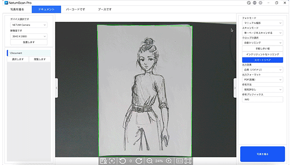 被写体の形状を自動的に検知し、最適な範囲を瞬時にトリミング。画像の余白や不要な部分を除去し、必要な部分だけを残します。スキャンデータがすっきりとなり、情報がコンパクトに保たれます。