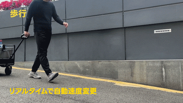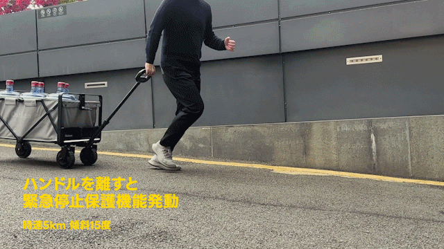 坂道の途中でも、ハンドルを離した瞬間に即座にその場で自動停止し、ユーザーと荷物を安全に守ります。特に急な下り坂や緊急時において非常に有効で、操作ミスや事故を防止し、大人から子供まで安心して利用できます。